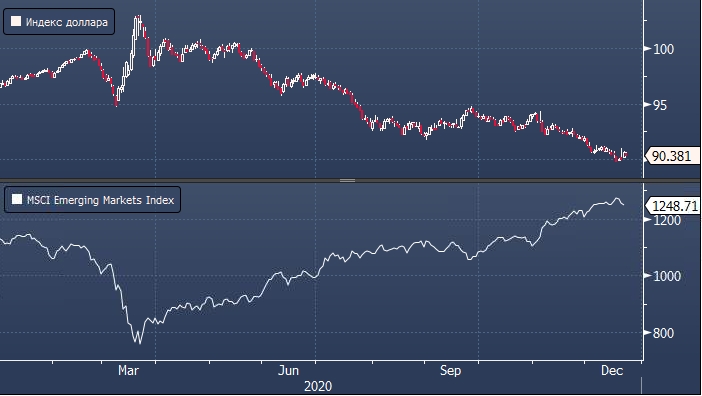 График индекса доллара и индекса акций развивающихся рынков от MSCI
