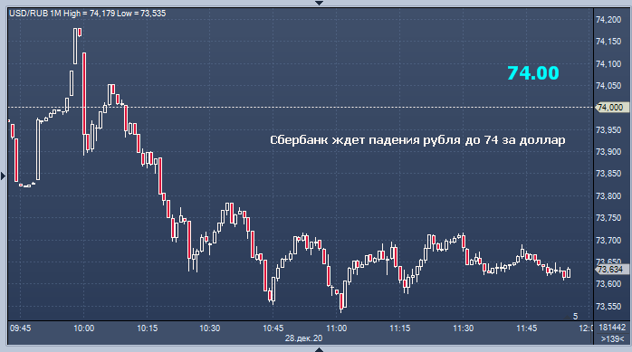 Рубль немного укрепляется в понедельник утром и торгуется около 74 руб./$1. Улучшению настроений на мировых биржах способствовало решение Дональда Трампа подписать закон о новых фискальных стимулах. Однако более ощутимое подорожание рубля маловероятно, считают в Сбербанке. Пик налогового периода миновал, и рубль лишился поддержки экспортёров. А спрос физлиц и иностранцев на валюту на этой неделе может вырасти.