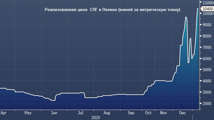 Спотовая цена сжиженного природного газа в Северо-Восточной Азии взлетела до нового рекордного значения, превысив максимумы начала 2014 года. Холодная погода вкупе с логистическими трудностями, вроде проблем на заводах по сжижению газа и затора в Панамском канале, толкают котировки вверх.
