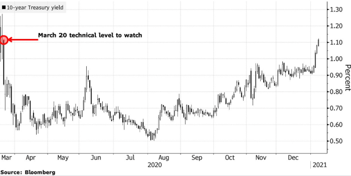 TD Securities рекомендует продавать 10-летние гос. облигации с целью 1.3%. Последний раз доходность фиксировалась на этом уровне в феврале 2020 года. Citigroup тоже призывает покупать активы, которые выиграют от роста доходности. Standard Chartered пересмотрел свою стратегию по 10-летним облигациям в сторону повышения, после того как стало ясно, что Демократы получили контроль над Конгрессом.