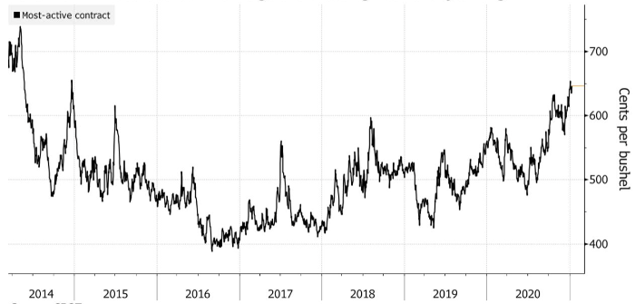 Нехватка участников подчеркивает, что протекционистские меры на рынках зерна усиливают опасения по поводу сокращения глобального предложения. Фьючерсы на пшеницу, кукурузу и сою близки к шестилетним максимумам, поскольку урожай может пострадать из-за неблагоприятных погодных условий, а крупные поставщики зерна, включая Россию и Аргентину, стремятся ограничить поставки, чтобы остановить рост цен на продукты.