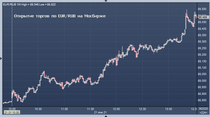 - 88,9677 рубля за 1 евро