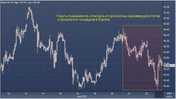 График цены нефти Brent интервалами 1 час