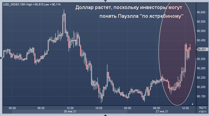 Доллар вырос по отношению к корзине валют в среду, поскольку рынки ждали комментариев от председателя Федеральной резервной системы Джерома Пауэлла, который, вероятно, сохранит приверженность сверхмягкой политике.