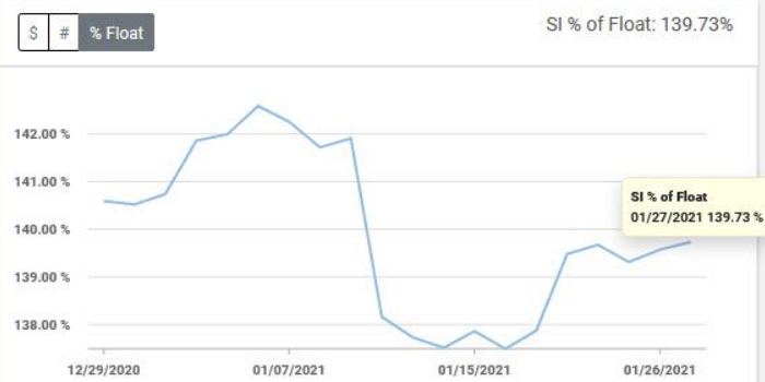 В последние дни несколько хедж-фондов, включая Melvin Capital и Citron Research, сообщили о закрытии коротких позиций* в акциях Gamestop, однако, похоже, что их место просто заняли другие игроки. Даже после недавнего взлета бумаг короткий интерес** по ним все еще составляет 139,7%, пишет в твиттере управляющий директор аналитической компании S3 Partners (отслеживает статистику по открытому интересу на рынке акций в реальном времени — прим. ProFinance.ru) Игорь Дусанивский.