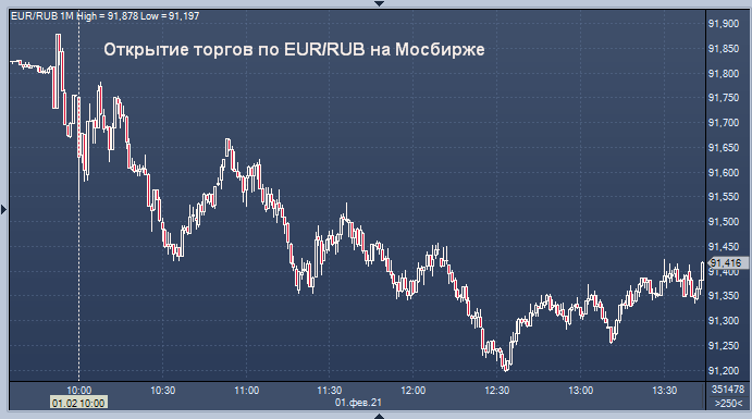 Таким образом, по официальному курсу ЦБ доллар упал к рублю на 75 копеек, а евро упал к рублю на 75 копеек по сравнению с официальным курсом субботы. Объем торгов на Московской бирже к 13:42 мск понедельника составил 880,7482 млрд рублей или 11 550,3875 млн долларов. Рубль и российские акции сегодня корректируются вверх на фоне улучшения позитивных настроений на мировых биржах. В Европе замедлилось распространение коронавируса.