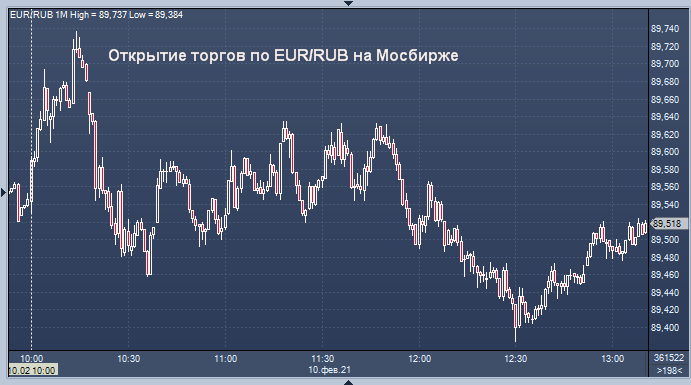 - 89,5684 рубля за 1 евро