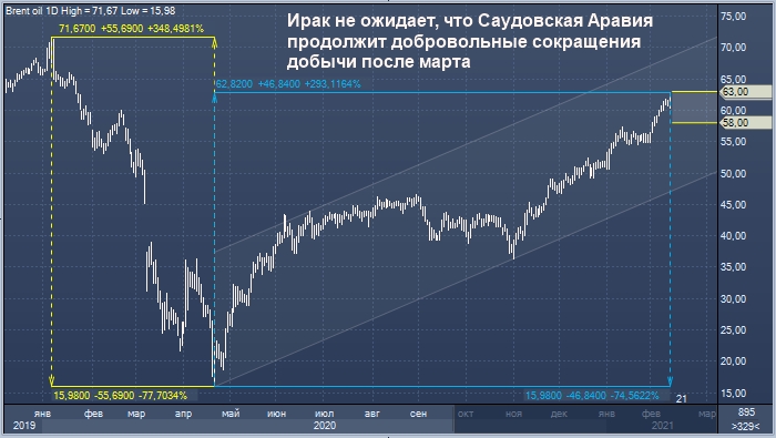 Будучи вторым по величине производителем в ОПЕК — Ирак не справляется с задачей компенсировать реализованные в 2020 году нарушения квоты. В январе Ирак добывал 3,87 миллиона баррелей нефти в день. Это всего на 10 тыс. б/д меньше, чем в декабре. Ирак обещал добывать не более 3,6 млн б/д в январе и феврале.