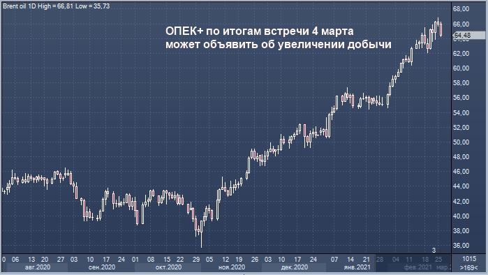 Банк на 3 доллара за баррель повысил прогноз цены нефти марки Brent на 2021 г. — до $64 зв баррель. Прогноз на 2022 г. повышен на $6 до $72 за баррель.