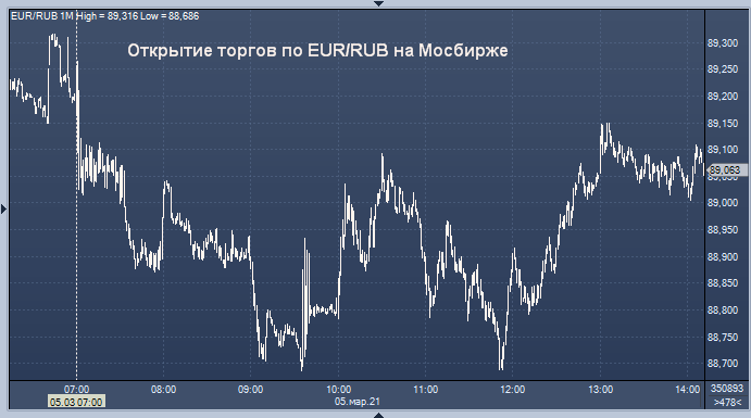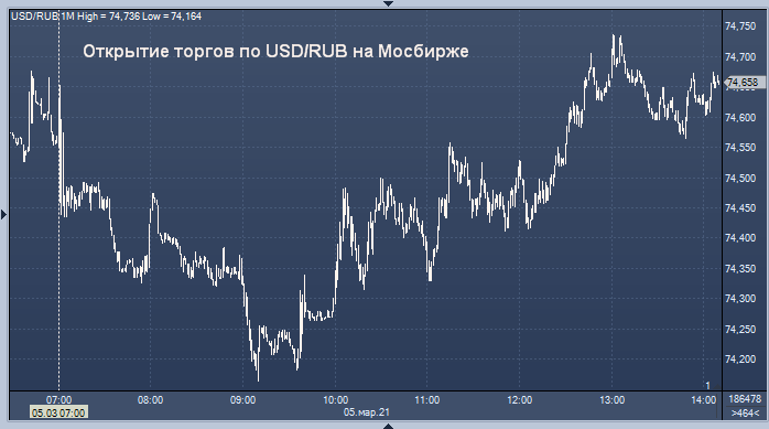 Таким образом, по официальному курсу ЦБ доллар вырос к рублю на 64 копейки, а евро упал к рублю на 1 копейку по сравнению с официальным курсом пятницы. Объем торгов на Московской бирже к 14:03 мск пятницы составил 1 062,3788 млрд рублей или 14 398,0304 млн долларов. Рубль упал вчера на фоне сильного роста доллара на форексе вслед за доходность трежерис. Пауэлл дал понять, что его устраивает рост доходности. Дополнительное давление на рубль оказала информация о том, что британцы и американцы готовят санкции на госдолг России (ОФЗ) в связи с якобы применением химического оружия. В пятницу рубль пытается найти самообладание и консолидируется, чему помогают рекорды нефти. Но его положение, с учетом вышесказанного, остается хрупким. Вскоре выйдет NFP, который способен породить новую волатильность: рубль может, скорее, упасть, так как экономисты ждут сильные данные. Сильные данные укрепят тенденцию роста доходности облигаций США и доллара.