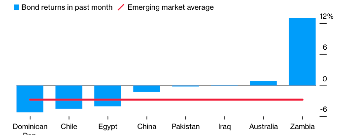 В январе страна купила местные подразделения Glencore Plc по более выгодной цене, и среди глобальных инвесторов стал формироваться бычий настрой. Долларовый долг Замбии в этом году вырос больше остальных 75 развивающихся рынков, отслеживаемых индексами Bloomberg Barclays.
