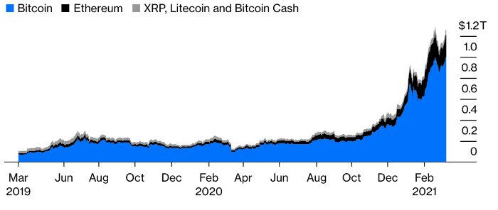 Однако эти, казалось бы, критические дефекты не помешали криптовалютам стать культурным и финансовым феноменом. Им присущи некоего религиозного или революционного движения, и они обещают будущее, в котором децентрализованные сети вытеснят не только деньги, но и компании, правительства и общество в привычном понимании. Подобный ажиотаж совпадает с крайне спекулятивным миром внутридневных трейдеров, где криптовалюты стали навязчивой идеей — при посредничестве таких людей, как Илон Маск, который вложил в биткоин $1.5 млн активов Tesla Inc. Рыночная капитализация биткоина — виртуального актива — в целом не имеющего практического применения, за исключением незаконной торговли, недавно достигла $1 трлн. Даже Dogecoin, созданный ради шутки, ненадолго превысил $10 млрд.