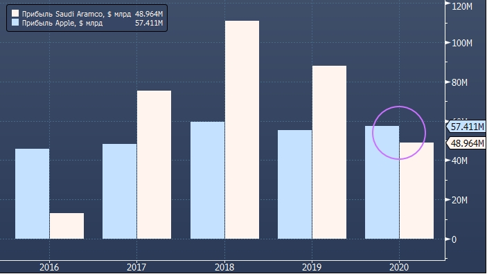 Результаты Aramco означают, что Apple теперь может претендовать на звание самой прибыльной компании в мире, поскольку она сообщила о доходе в размере 59 миллиардов долларов в 2020 году.