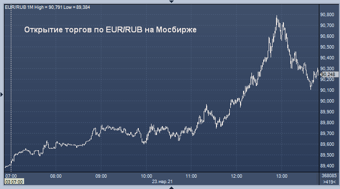 Таким образом, по официальному курсу ЦБ доллар вырос к рублю на 75 копеек, а евро вырос к рублю на 1 рубль 11 копеек по сравнению с официальным курсом вторника. Объем торгов на Московской бирже к 13:46 мск вторника составил 1 106,5468 млрд рублей или 14 831,3766 млн долларов. Рубль продолжает падать как вследствие внешних, так и связанных исключительно с Россией причин. К первым относятся антикитайские санкции, продление карантина в Германии, удешевление нефти, обвал турецкой лиры. Ко вторым — ожидание санкций против России, прежде всего от США. На рынке есть некий консенсус: если санкции будут персональными и/или против «Северного потока 2», рубль может даже вырасти. Если это будет запрет против российского госдолга или исключение России из банковской телекоммуникационной системы SWIWT, рубль может заметно подешеветь. Это неведение давит на рубль, и он продолжает терять в стоимости.
