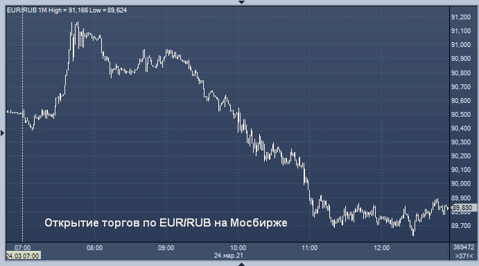 Таким образом, по официальному курсу ЦБ доллар вырос к рублю на 80 копеек, а евро вырос к рублю на 29 копеек по сравнению с официальным курсом среды. Объем торгов на Московской бирже к 12:51 мск среды составил 992,2843 млрд рублей или 13 167,5164 млн долларов. Рубль сегодня корректируется вверх после сильного падения накануне. Рубль поддерживает отскок нефти, налоговый период и снижение доходности трежерис и ОФЗ.