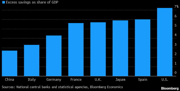 - объем вынужденно накопленных избыточных сбережений домохозяйств США составляет $1,5 трлн. К середине года, когда страна вернется к нормальной экономической жизни, этот показатель вырастет до $2,4 трлн, что эквивалентно 11% ВВП США;