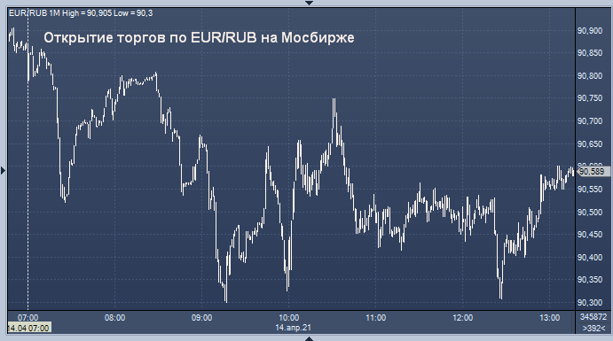 Таким образом, по официальному курсу ЦБ доллар упал к рублю на 1 рубль 57 копеек, а евро упал к рублю на 1 рубль 38 копеек по сравнению с официальным курсом среды. Объем торгов на Московской бирже к 13:13 мск среды составил 1 013,1585 млрд рублей или 13 114,7259 млн долларов. Рубль сегодня консолидируется после мощного роста во вторник на сообщениях о звонке Байдена Путину с предложением встречи. Песков сообщил сегодня, что Путин пока не принял предложение Байдена, оно только будет анализироваться.