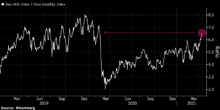 Отношение индекса VVIX к индексу VIX. Источник: Bloomberg