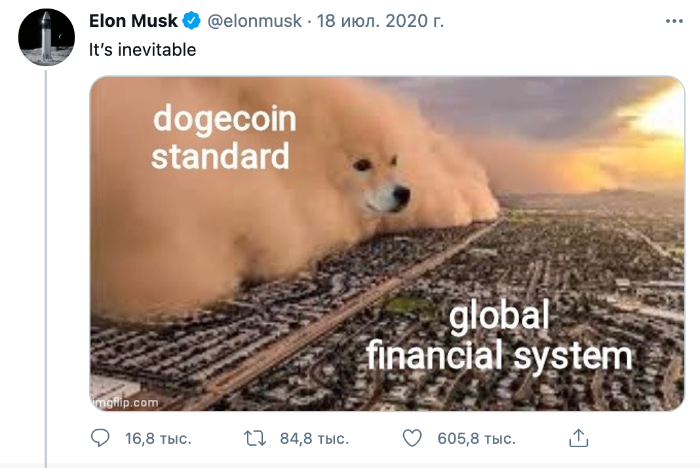 Но ситуация резко изменилась. За последний год стоимость Dogecoin взлетела на 18 000%. Даже когда биткоин упал в минувшие выходные, Dogecoin торговался вблизи рекордных максимумов. Как сказал бы Сиба-ину: «Вот это да. Непонятно». О нем пишет в Твиттере Илон Маск.