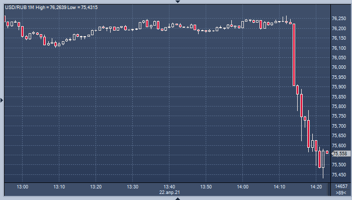 Курс рубля к доллару и евро резко вырос на новостях о скором отводе войск от границы с Украиной: агентство Bloomberg сообщает о том, что с 23 апреля войска Южного и Западного округов начнут возвращаться к местам дислокации.