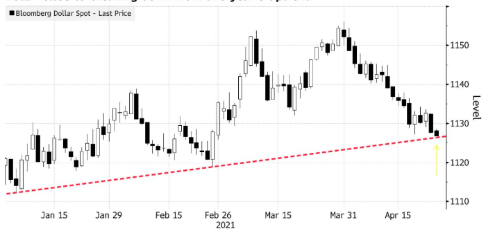 В апреле индекс доллара Bloomberg упал почти на 2% и эта стратегия тоже оказалась нерабочей.