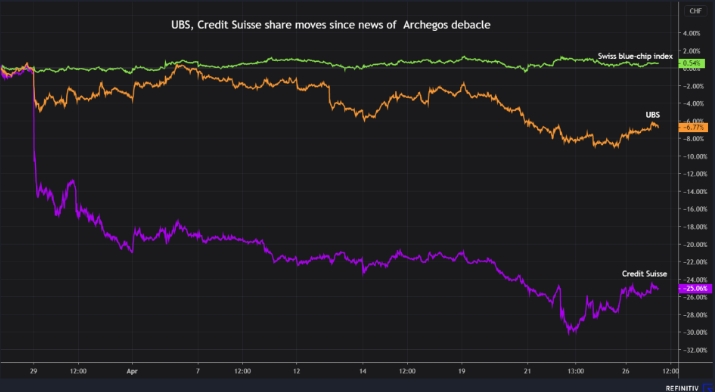 Credit Suisse потерял более чем 5 миллиардов долларов из-за краха Archegos, который вызвал убытки среди ряда глобальных банков и массовую распродажу акций, когда фонд объявил дефолт по маржинальным требованиям в конце марта.