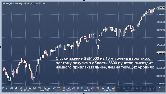 «У инвесторов довольно мало причин покупать на текущих уровнях, учитывая перекупленность рынка», - сообщил Левкович в понедельник в интервью Bloomberg TV. - «10-процентная коррекция S&P 500 очень вероятна, поэтому область около 3600 пунктов выглядит намного привлекательнее для покупок».