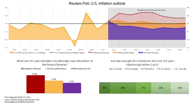 Предпочтительный индикатор инфляции Федеральной резервной системы должен достичь максимума в 2,8%, чтобы создать чувство дискомфорта у монетарных политиков США, согласно опросу Reuters, который также показал, что центральный банк будет терпеть этот уровень в течение как минимум трех месяцев, прежде чем начнет действовать.