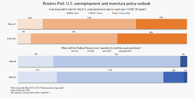 График опроса Reuters об уровне безработицы в США и перспективах денежно-кредитной политики. Источник: Reuters