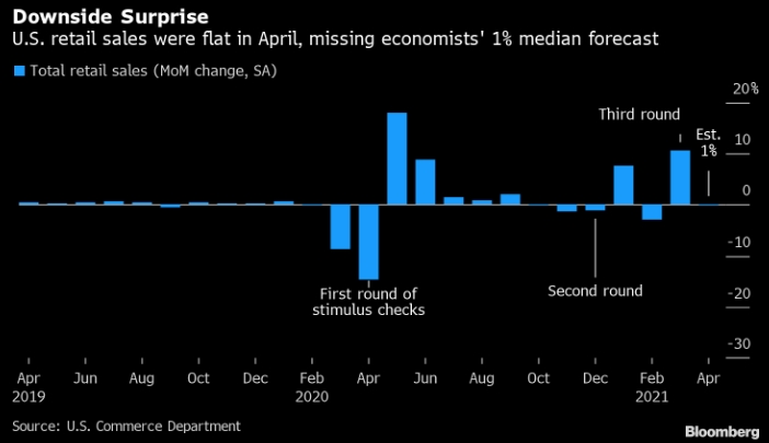 В этом месяце вслед за новостями о замедлении найма в апреле из-за нехватки рабочих, слабые продажи могут вызвать опасения по поводу восстановления экономики. Хотя более трети американцев были полностью вакцинированы против COVID-19, опасения по поводу вируса сохраняются, а школы не открылись полностью для очного обучения, в результате чего многие работники остаются дома.