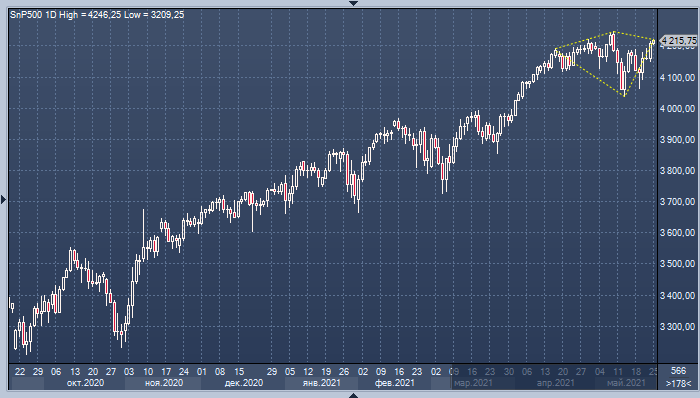 В понедельник S&P 500 поднялся до двухнедельного максимума и превысил круглую отметку 4200 пунктов. Однако последние недели индекс провел в 200-пунктовом диапазоне, где растерял почти весь бычий моментум.
