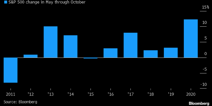 Процентное изменение S&P 500 в период с мая по конец октября. Источник: LPL Financial, Bloomberg