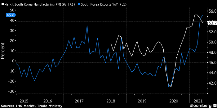 Стремительный рост южнокорейского экспорта обусловлен ростом спроса, которому способствует снятие локдаунов по всему миру.
