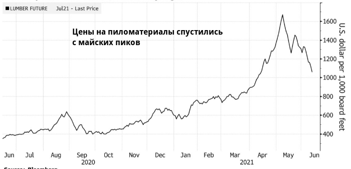Огромный спрос на жилье и сокращение предложения способствовали росту цен на пиломатериалы в этом году, что стало одним из ключевых факторов, из-за которых строить дома в США стало дороже, чем когда-либо прежде. Однако появились признаки охлаждения. В понедельник фьючерсы на пиломатериалы снова упали, продолжив крупнейшее недельное падение за всю историю. Это обусловлено тем, что пилорамы наращивают производство, а покупатели воздерживаются от покупок. На прошлой неделе цены на Чикагской бирже упали примерно на 18%, что ознаменовало сильнейший обвал наиболее активных фьючерсов, начиная с 1986 года.