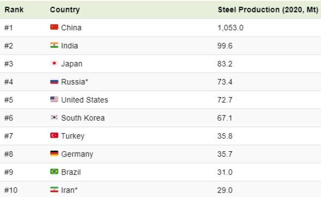 Десятка крупнейших производителей стали в 2020 году. Источник: VisualCapitalist
