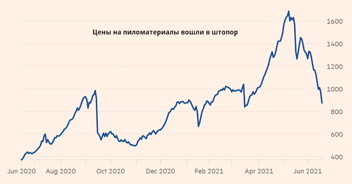 Цены на пиломатериалы рухнули на 48% до $875 за тысячу досковых футов с пика в $1686, достигнутого в начале мая, что отражает более резкий, чем ожидалось, откат в планах по реконструкции.