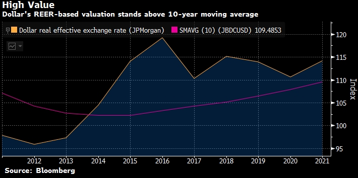 График эффективной стоимости доллара (JPMorgan). Источник: Bloomberg
