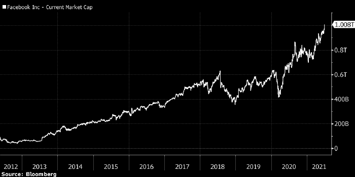 Капитализация Facebook в трлн долларов США. Источник: Bloomberg