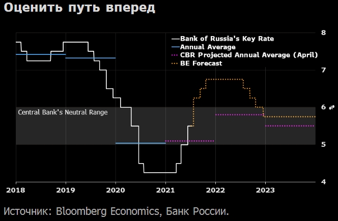 В конце прошлого месяца глава ЦБ Эльвира Набиуллина породила слухи о решении от 23 июля, сообщив Bloomberg TV, что центральный банк рассмотрит вопрос о повышении ключевой ставки на 25-100 б.п. Это последует за ростом на 50 б.п. в июне и апреле и повышением на 25 б.п. в марте.