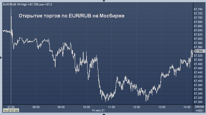 Таким образом, по официальному курсу ЦБ доллар вырос к рублю на 7 копеек, а евро упал к рублю на 39 копеек по сравнению с официальным курсом среды. Объем торгов на Московской бирже к 14:03 мск среды составил 665,5971 млрд рублей или 8 987,4019 млн долларов. Рубль сегодня растет на фоне удорожания нефти.