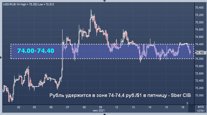 Рубль, скорее всего, удержится в пределах 74-74,4 руб./$1 в пятницу, считают аналитики Sber CIB.