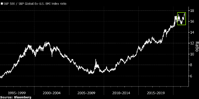 Отношение S&P 500 к S&P Global ex-US. Источник: Bloomberg
