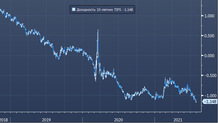 На графика отображена динамика доходности защищенных от инфляции облигаций США