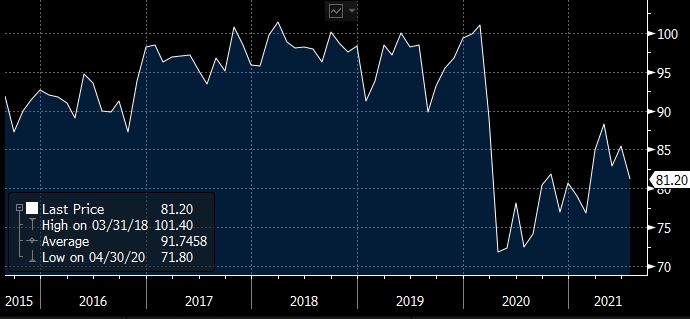 Индекс настроений потребителей университета Мичигана. График Bloomberg