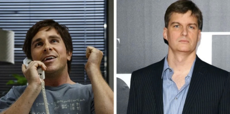 Слева на фото изображен актер Кристиан Бейл в роли Майкла Бьюрри в фильме «Игра на понижение», а справа — сам Майкл Бьюрри. Источник: USA Today