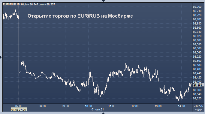 Таким образом, по официальному курсу ЦБ доллар упал к рублю на 8 копеек, а евро упал к рублю на 27 копеек по сравнению с официальным курсом среды. Объем торгов на Московской бирже к 14:24 мск среды составил 876,1612 млрд рублей или 11 956,6577 млн долларов. Рубль сегодня продолжает расти вслед за рисковыми активами: нефтью, мировыми акциями, металлами, ЕМ-валютами.