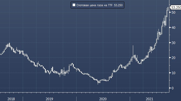 Спотовая цена природного газа на голландской TTF сегодня достигла нового рекордного значения в 53,45 евро за МВт-ч, что эквивалентно цене в долларах за тысячу кубометров примерно на уровне $670.