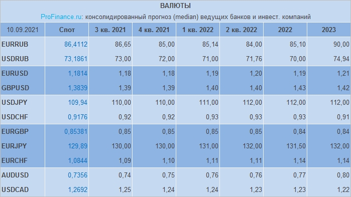 Мы ежемесячно составляем и публикуем таблицу консолидированных прогнозов, которая позволяет оценить настроения рынка и представляют собой «средний градус по больнице». Мы учитываем только те прогнозы, которые были сделаны не позднее 14 дней от даты публикации.