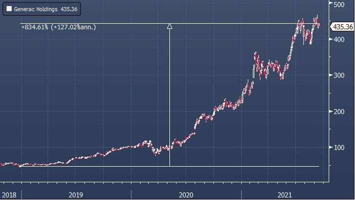 Подавляющее большинство генераторов производится одной компанией: Generac — 62-летний производитель из Вокеша, штат Висконсин. На долю Generac приходится примерно 75 процентов продаж резервных домашних генераторов в Соединенных Штатах. Его доминирование на рынке и растущая угроза, создаваемая все более неустойчивой погодой, превратили акции компании в любимца Уолл-стрит.