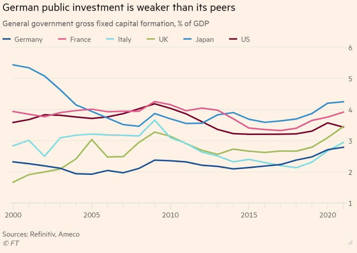Еще до пандемии Германии потребовалось около 450 млрд евро государственных инвестиций, чтобы начать декарбонизацию, улучшить связь, повысить уровень образования и укрепить инфраструктуру, что не смогло сдержать наводнения этим летом. Действительно, потребность в дополнительных инвестициях стала сплоченным кличем некоторых кандидатов, которые сейчас соперничают за место Меркель.